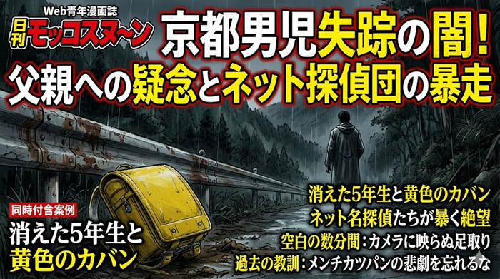 我が子の帰りを待つ悲痛な叫びか、それとも巧妙に仕組まれた狂言か。 京都で突故消えた小学5年生。カメラに映らぬ「空白の数分間」が、ネット住民たちの深淵なる名探偵魂に火をつけてしまったようです。 💡 小学生でもわかるランリュ… 続きを読む 【京都男児失踪】父親への疑念とネット私刑