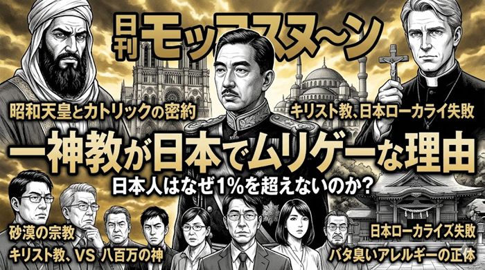「神様は1人だけ!他は全部ニセモノ!」そんな極端なルール、俺たちにはムリゲーすぎる!? 西洋への憧れはあるけれど、魂の根っこでは「八百万の神」が騒ぎ出す。 今回は、日本人がなぜ一神教に激しい拒絶反応を示すのか、その精神構… 続きを読む 【宗教観】日本でキリスト教が増えない真理(1%の壁とアレルギー)