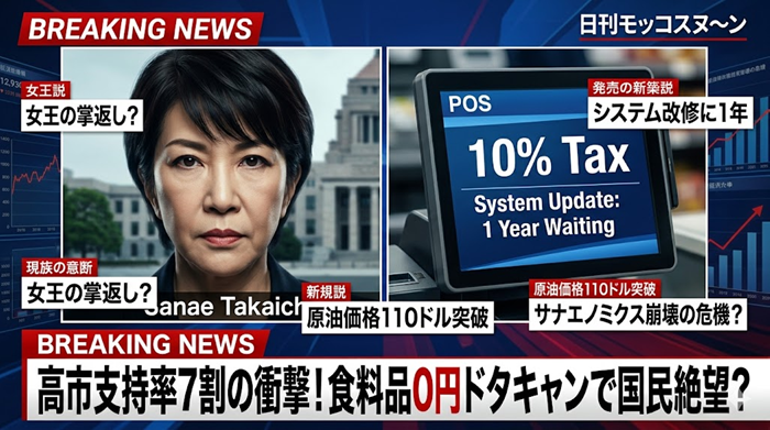 支持率70%超えの「最強女王」高市政権に激震!公約の「食料品消費税0%」がまさかの1年待ち?中東情勢の悪化でガソリン代も爆上がりする中、ネット民のボルテージは限界突破。期待が大きかっただけに「掌返し」への絶望感が止まらな… 続きを読む 【高市政権】支持率7割と物価高の罠…「消費税ゼロ」1年待ちの絶望