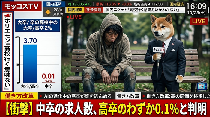 ホリエモン中卒推奨の残酷な真実w高卒の求人倍率3.7倍に対し中卒は0.1%