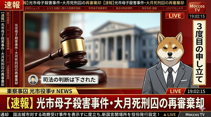 光市母子殺害事件、死刑確定から14年。45歳となった大月死刑囚が放った「最後の手札」とは。 日本中を震撼させたあの事件が、再び司法の場で動きました。 かつて「ドラえもん」や「アケチ君の手紙」で世間を絶望させた被告。 成人… 続きを読む 光市母子殺害事件の大月死刑囚45歳が3度目の再審棄却で異議
