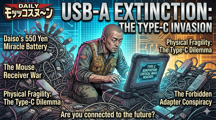 【絶望】「USB-Aが絶滅危惧種に…」ダイソーのType-C電池発売で加速する“A切り捨て”の波にネット民悲鳴!「マウスのレシーバーはどうすんねん!」「Cは華奢すぎてすぐもげる」PCポート不足問題の末路とは? 元スレ:最… 続きを読む 【USB規格統一紛争】ダイソー550円充電池の衝撃と消えゆくType-Aの執念