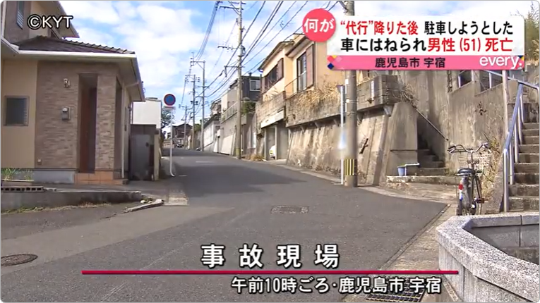 https://news.yahoo.co.jp/articles/b83b1f54f6428951ae22dd0ef94984bf95837d26鹿児島市で15日未明、代行運転を利用した男性(51)が、自宅に到着し降りたところ、駐車しようとしていた車にはねられ死亡した。