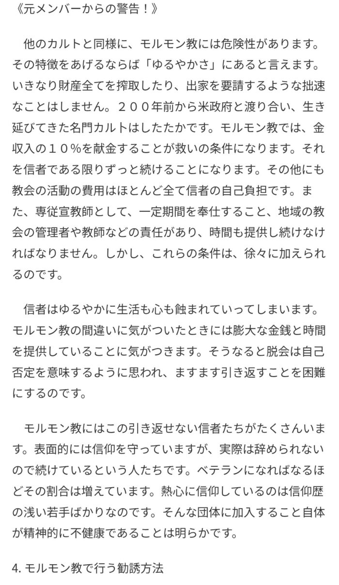 「什分の一献金は未納」というモルモンイッチのぶっちゃけ発言には、思わず「おまいう」とツッコミたくなるな。