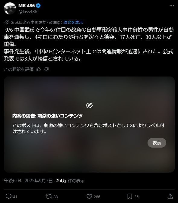 日本にもいるじゃん中国で相次ぐ「献忠」事件を考える 経済苦が招く社会的報復テロ
