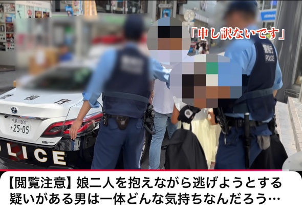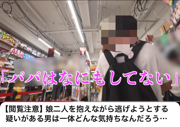 これはキツい…。娘さん2人を連れた父親が、ドン・キホーテで盗撮をしているところを私人逮捕系YouTuberに確保され、警察に引き渡される一部始終だ。何より、子供たちの目の前でというのが地獄すぎる…。