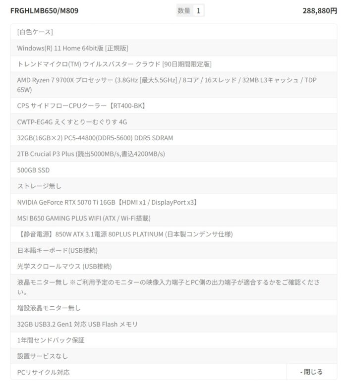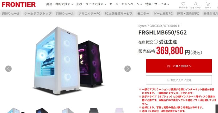 このスペックで37万って高いと思うわ。ケースが高いのか組み立て費用が高いのか知らんけど。自作のほうがイイよ。