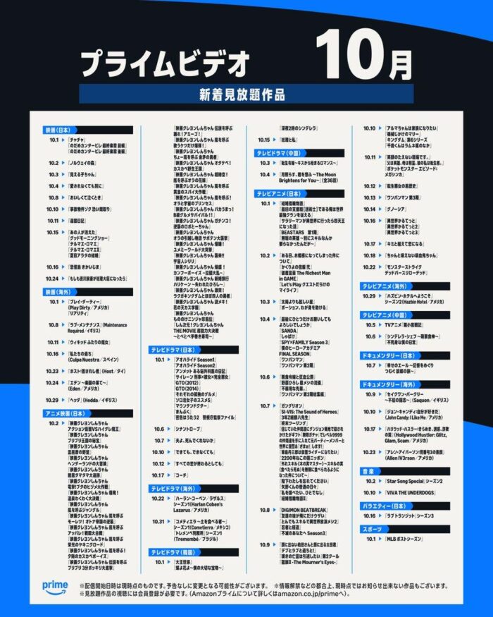 どうも、管理人moccosだ!今回は「プライムビデオ、10月のラインナップを公開!これ全部タダって言ったら信じる?」という、なんとも刺激的なスレッドを見つけてきたぞ!