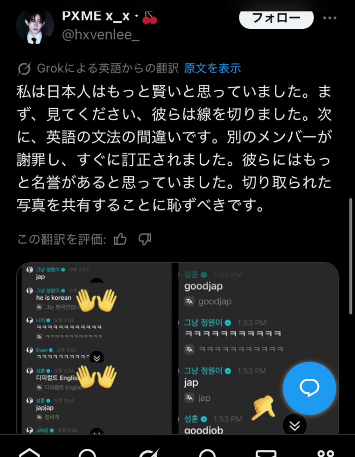 日米は戦争した間柄だからJAP呼びも理解できるけれど朝鮮人がその尻馬に乗ってるのはほんといつもの朝鮮仕草だなぁと思う