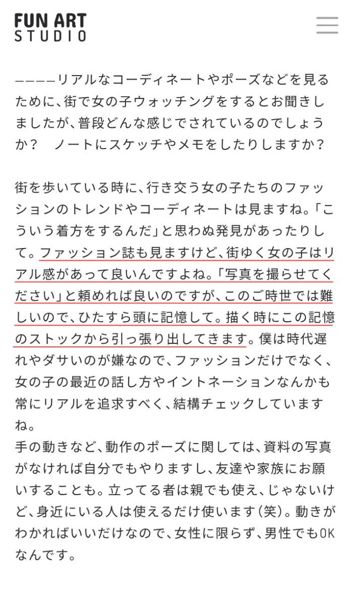 @jr_maaach ちな江口寿史氏は2020年のインタビューでイラストのポーズや服のコーディネートはどうやって考えているのかを質問された際、