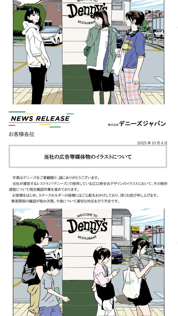 トレパク疑惑が浮上している江口寿史さんの作品、次はデニーズの広告イラストも調査中に…