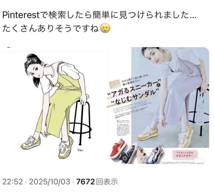 ファッション雑誌の商用写真トレパクしてました。画像サイトやSNSの写真は当然パクってましたこんなことあるか。まさに古塔つみの師匠やんけ