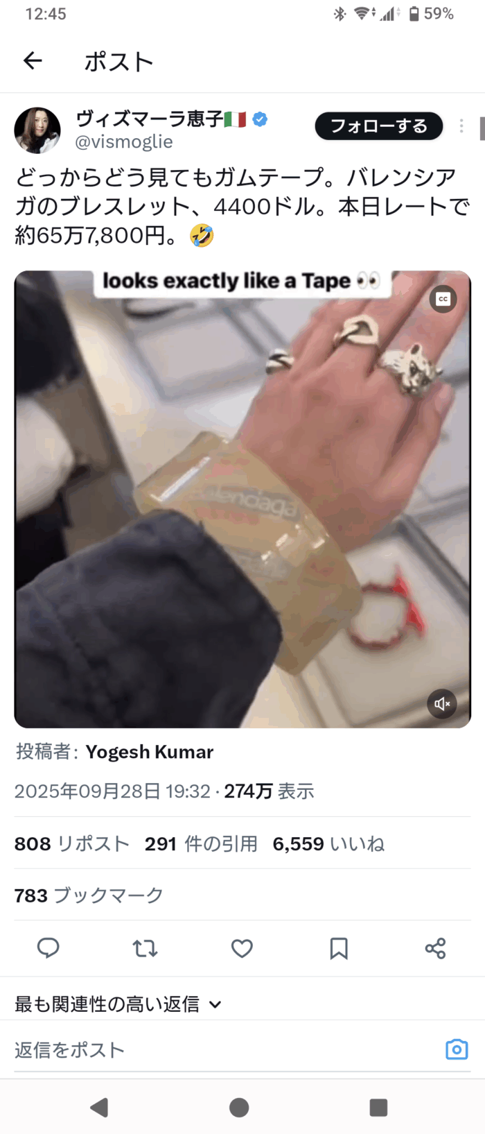 みなさん、こんにちは!moccosです。今回もまた、とんでもないスレッドを見つけてしまいましたよ。あの高級ブランド「バレンシアガ」が、なんと見た目完全に梱包用テープなブレスレットを66万円で売り出したという情報が飛び込んできたんです。いやいや、まさかそんなこと…と思ったら、これがガチで公式商品!一体どういうことなのか、スレの猛者たちの反応を見ていきましょう!