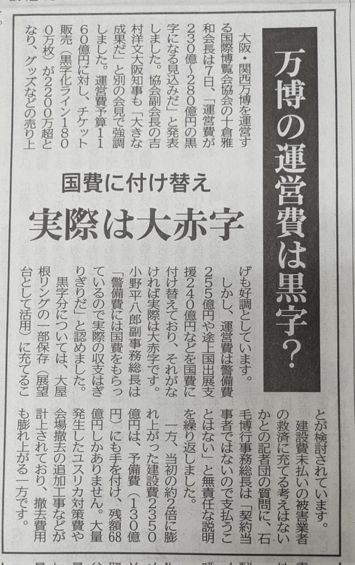 隠蔽改ざん捏造大本営「万博は黒字!2900万人!原発は安全!転進!」