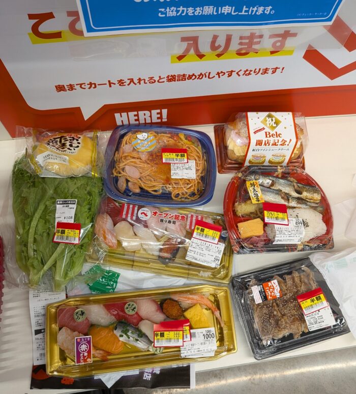 スーパーでパック寿司と天ぷらの盛り合わせセットを買う
