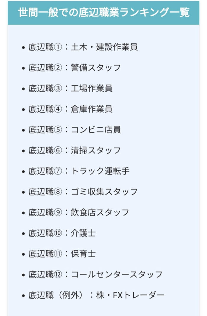 むしろ底辺職って呼ばれる仕事はだいたい給料そんな悪くないだろ