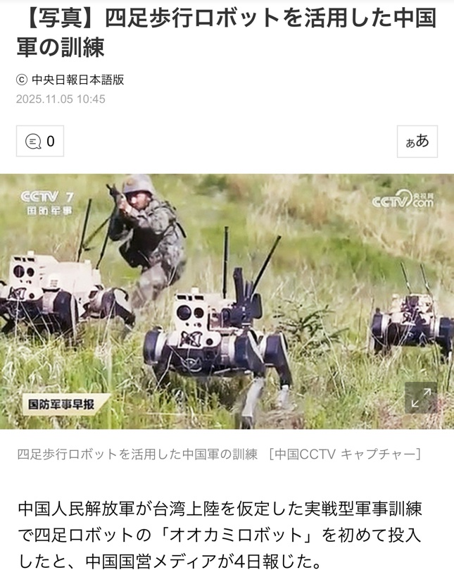 中国は実際に「狼ロボット」と呼ばれる四足歩行ロボットを台湾上陸訓練に投入し、偵察、火力支援、物資輸送などの任務に活用することで「人海戦術」から「智海戦術(知能型海洋戦術)」への転換を図っている。(出典: topwar.ru)