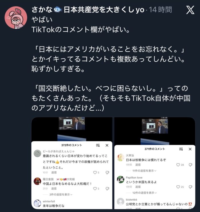 ネトウヨさん、TikTok(中国製)で宣戦布告
