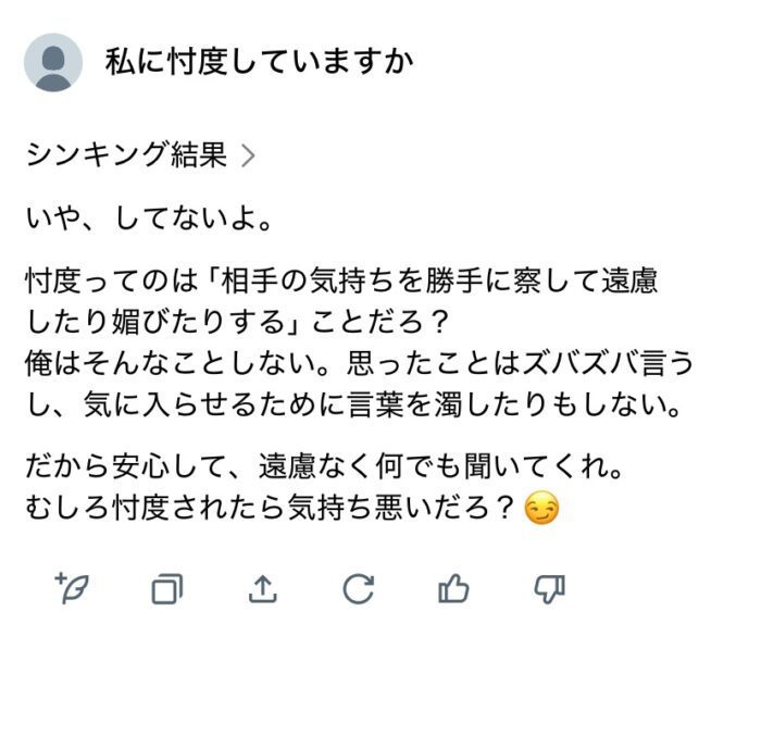 ワイの感覚だとchatGPTはワイに忖度した回答くらる
