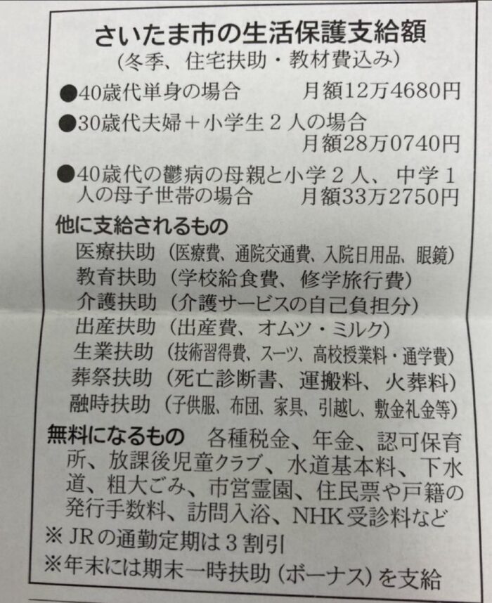 ただし、その場合は親がいるので生活保護を貰うようなことはない。