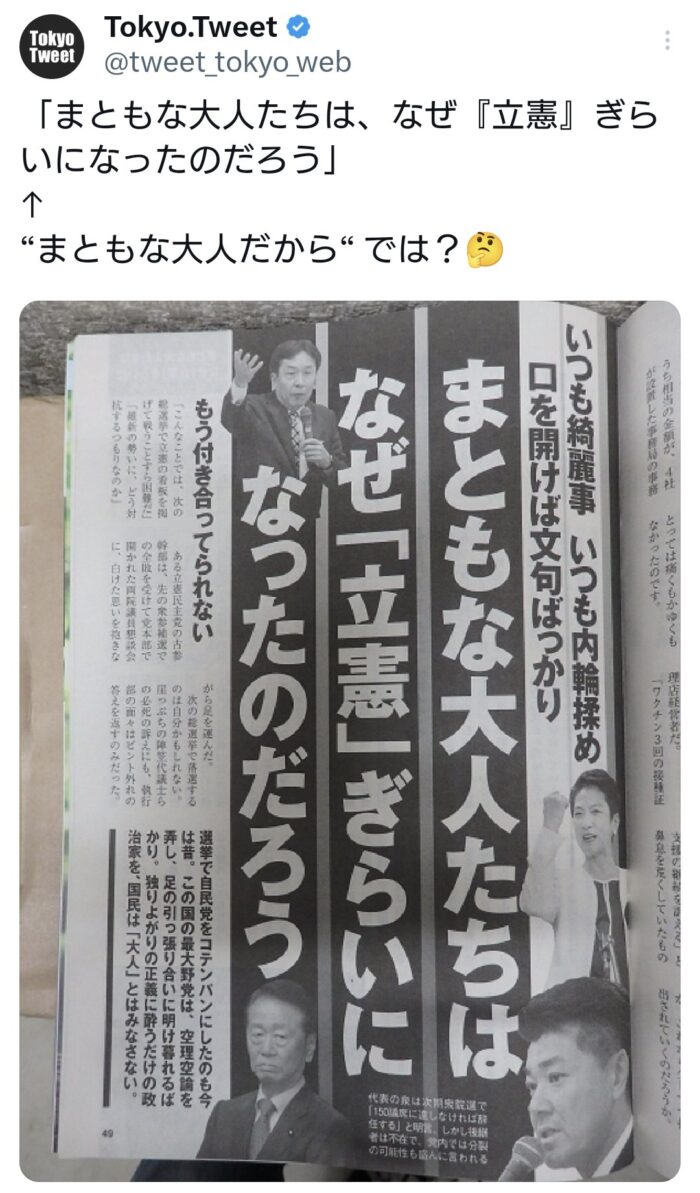 【悲報】まともな大人さん、立憲民主党が嫌いな理由をよってたかってフルボッコにしてしまうwww