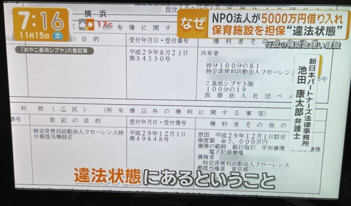 私が最初に違法であると指摘した、認定NPO法人フローレンスの根抵当権問題がついにテレビ朝日で報道されました!