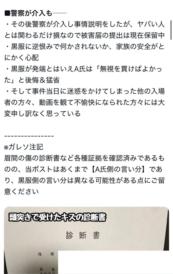 ベージュ男性側の言い分が投下され、黒T男性の一方的な暴行であることが確定したな。この件は、単なる口論では終わらず、被害届の提出を巡る葛藤や、SNSでの情報拡散による「私刑」の危険性まで浮き彫りにしている。