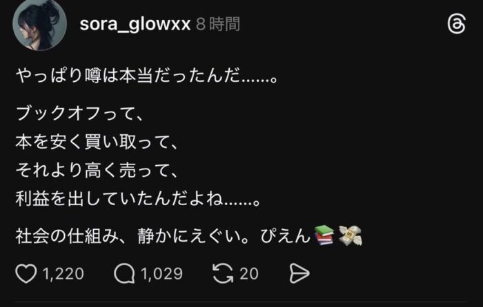 スレ主の投稿から始まったブックオフを巡る“騒動”。その内容は、小売業の基本中の基本、つまり「安く仕入れて高く売る」というビジネスモデルへの驚き、いや、むしろ皮肉な視線で語られている。転売ヤーへの憎悪をぶつける者もいれば、冷静にその本質を突く者もいる。まさに人間模様の縮図といったところか。