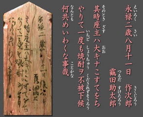 この落書きは建造物の中に隠されていたもので酒を出さない迷惑な住職というものだが酒を出さない(教えを守る真面目な人)という称賛であると思われる