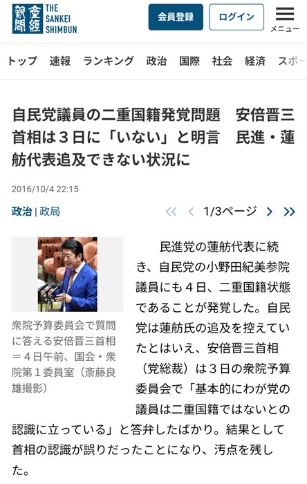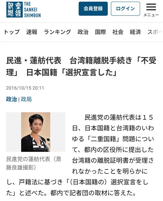 二重国籍問題、蓮舫氏との比較で浮き彫りになるダブルスタンダード