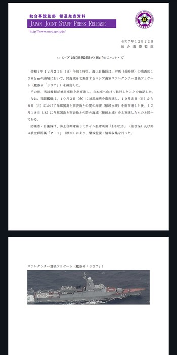 直近のロシア太平洋艦隊フリゲート艦補給艦や曳航船も連れてない雑魚