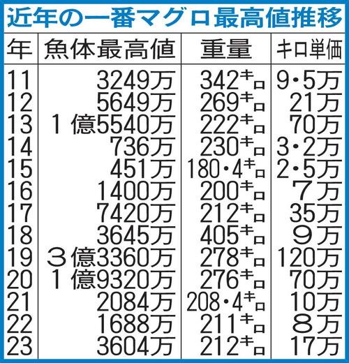 ここ10年くらい外国人なり企業なりが初競りに参加してきて高値で1番マグロ買ってた