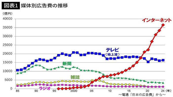 ネットの広告費はテレビの2.5倍に達する勢いだ。2026年以降も、テレビ分をネット側が容赦なく削っていく流れは止まらないと見られている。次世代メディア研究所代表の鈴木祐司さんは「テレビ局はインターネットのポテンシャルを読み間違えた。だが、その出遅れを一挙に挽回し、反転攻勢する方法は残されている」という――。