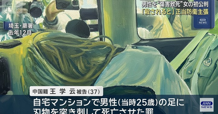 埼玉県所沢市のマンションで2024年12月、男性=当時(25)=を刃物で刺して死亡させたとして、傷害致死などの罪に問われた、住居職業不詳、中国籍女の王学云被告(37)の裁判員裁判の判決公判が15日、