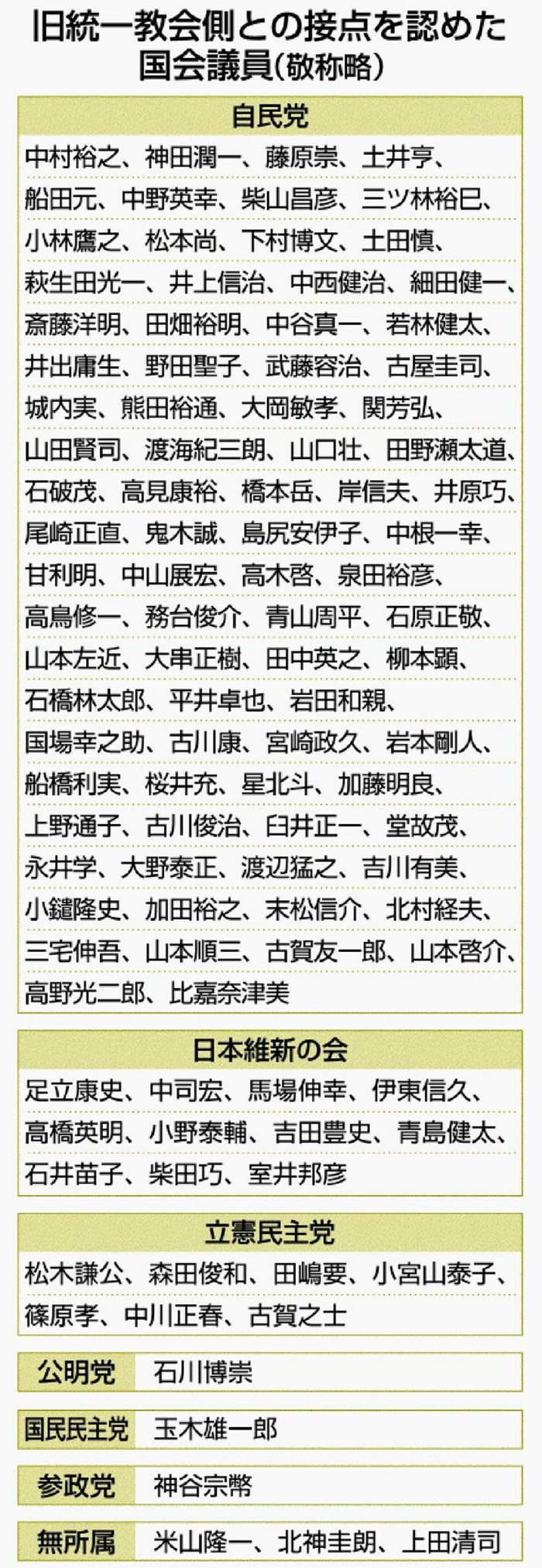 >(旧統一教会)の友好団体関係者との会合に参加していたと、会合の様子とされる写真とともに