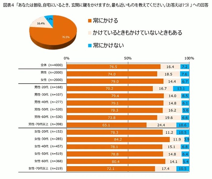 防犯意識で言えば例えば自宅の施錠率に男女差は大してないんですよ