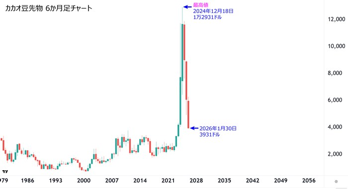 かつて「チョコレートが高級品になってしまう」と絶望した日々が嘘のようです。2024年から2025年にかけての「カカオショック」は、西アフリカの不作と投機マネーの流入が原因でしたが、2026年現在は供給が回復し、市場は一気に供給過多へと振れています。