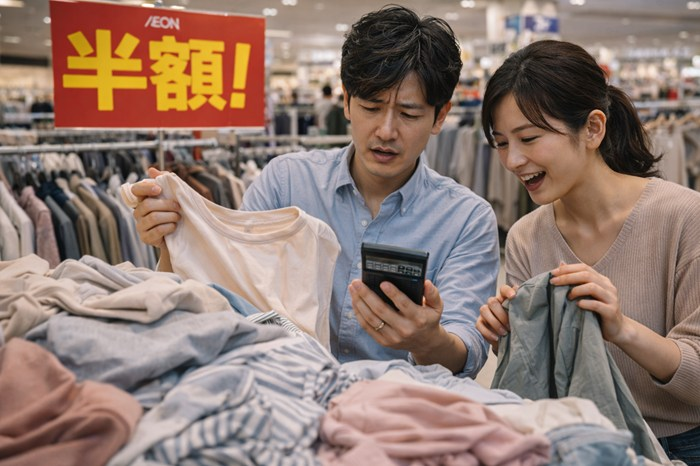 みなさん、イオンの衣料品売り場で「謎の鐘」が鳴り響く瞬間に出会ったことはありますか?今回は、その場に居合わせた者だけが味わえる「半額の半額」という異次元の安さと、それに翻弄される人々のリアルな叫びをお届けします!