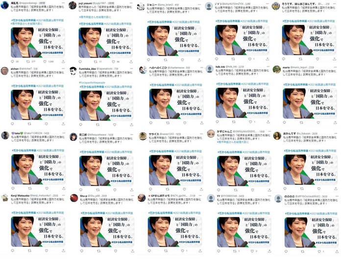 400ほどの中国系のアカウントが連携し、高市早苗政権の印象を下げる投稿を拡散していた。
