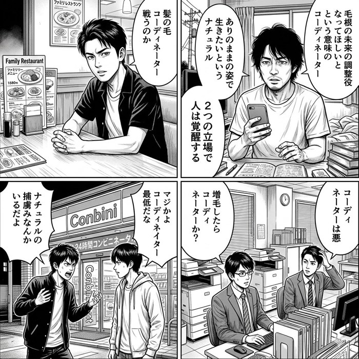 つまり、ありのままの自分(毛根)で勝負しているのが「ナチュラル」、増毛や植毛という「科学の力(遺伝子操作的な)」で手に入れたのが「コーディネイター」という、絶妙すぎる対比がこの大喜利の肝となっているわけですね。