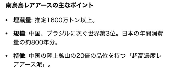 南鳥島のレアアースも80兆円の投資の中に含めてもらうよう交渉すればいいよ。