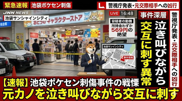 2026年3月26日、池袋サンシャインシティ内の「ポケモンセンターメガトウキョー」にて、店員の春川萌衣さん(21)が元交際相手の広川大起(26)に刺され死亡する事件が発生。防犯カメラには、広川容疑者がレジ内の春川さんを襲い、自分と彼女を交互に首などを何度も刺し続けるという衝撃的な光景が記録されていました。広川容疑者はその後、自らも死亡しています。