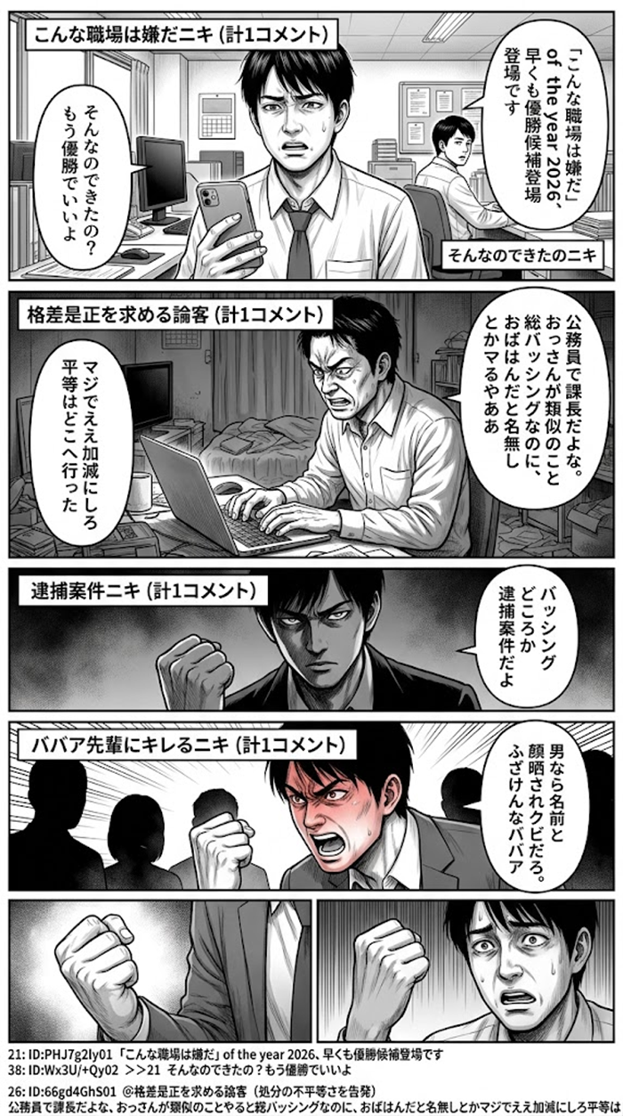 ID:rhYju2cI01氏やID:KS8bwfKH01氏が指摘するように、もし被害者が女性で、加害者が男性上司であったなら、刑事事件として扱われ、実名報道や懲戒解雇は免れなかったでしょう。