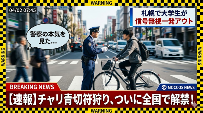 これまで「イエローカード」で済んでいた違反が、容赦なく反則金の対象になるという、まさに「チャリ狩り」の幕開けです。