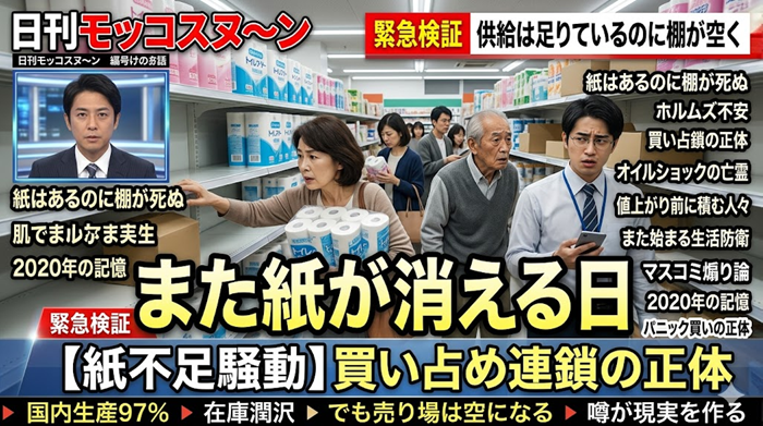 今回の話題で一番怖いのは、紙不足そのものじゃない。前回の記憶を抱えたまま、みんなが一斉に走り出すことだった。
