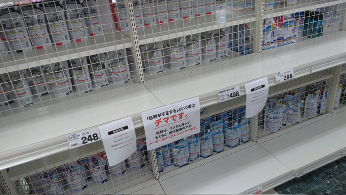 そこに、マスゴミがデマ蔓延させて生産量以上の需要を呼び起こすと、動きの早い人によって簡単に在庫切れが起きる