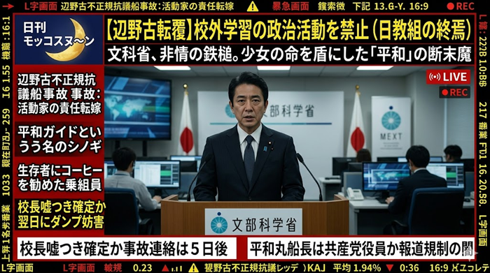 - 平和学習の「聖域」の終焉: 「平和教育」という大義名分があれば、無許可の船に乗せたり、特定の政治的思想を植え付けたりしても許されるという風潮に、国が明確な「NO」を突きつけました。