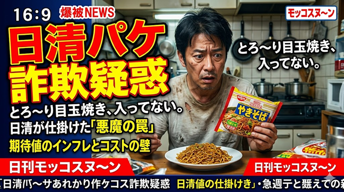 「とろ~り目玉焼きでやみつき」――そんな魅惑のフレーズと、パッケージを埋め尽くさんばかりの黄金色の目玉焼き。空腹の限界で手に取ったその袋に、まさか「絶望」が詰まっているとは誰が予想できたでしょうか。令和の食卓を揺るがす、日清食品の“とんでもない手法”をネット上の声がぶった斬ります。