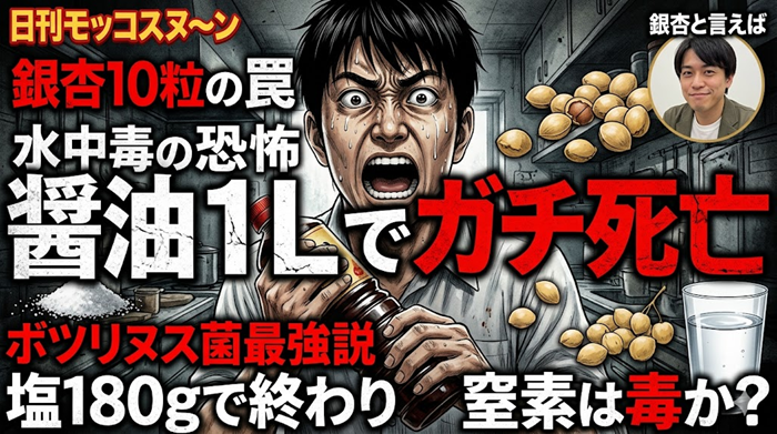 醤油1リットルや、食塩およそ大さじ4杯、さらには銀杏数十粒といった、日常生活で「うっかり」超えてしまいそうな量に、実は死の境界線が潜んでいます。