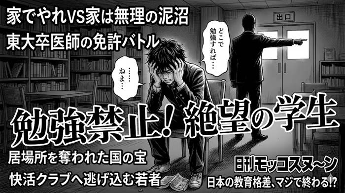 【教育の危機】勉強禁止の非情宣告に学生絶望…家でやれVS家は無理の泥沼論争www